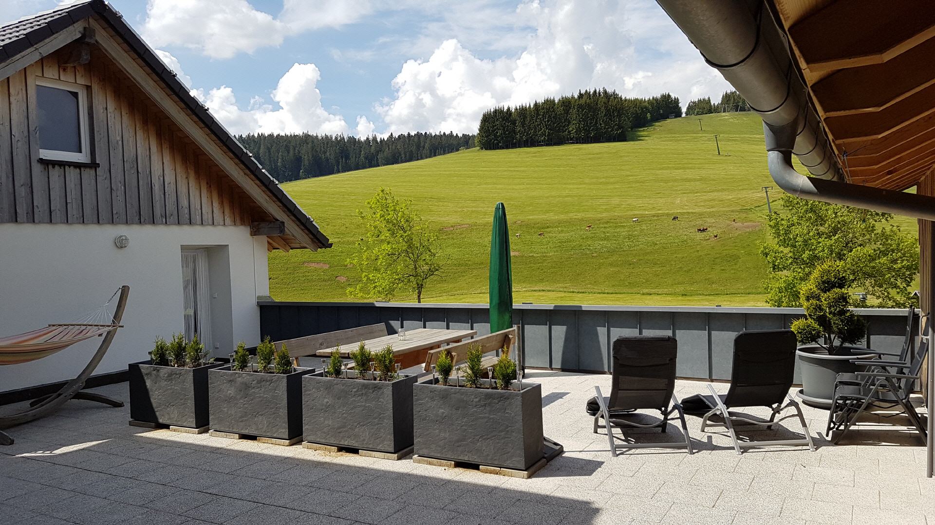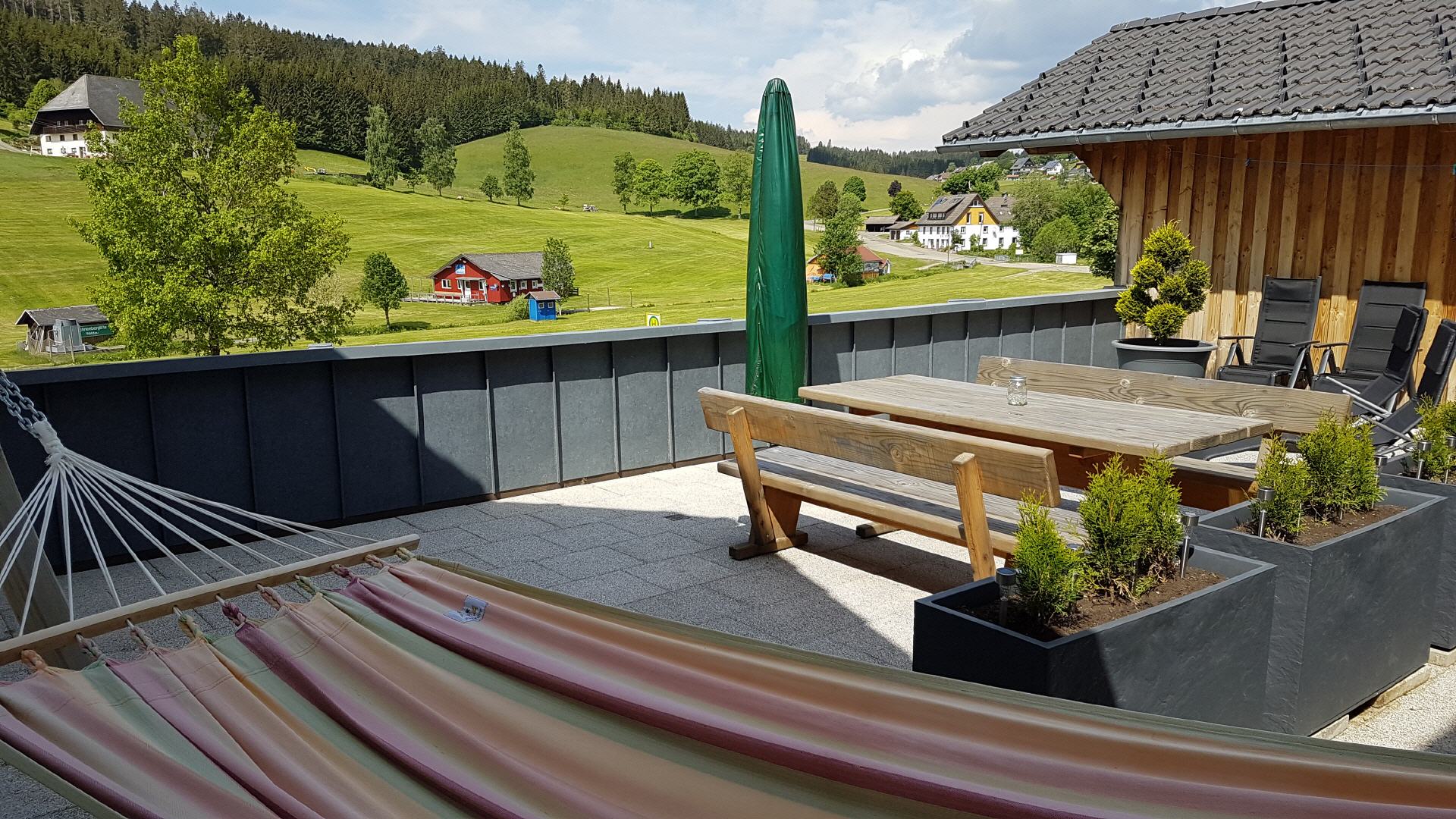 - Terrasse: Gartenmöbel, Liegen, Hängematte.