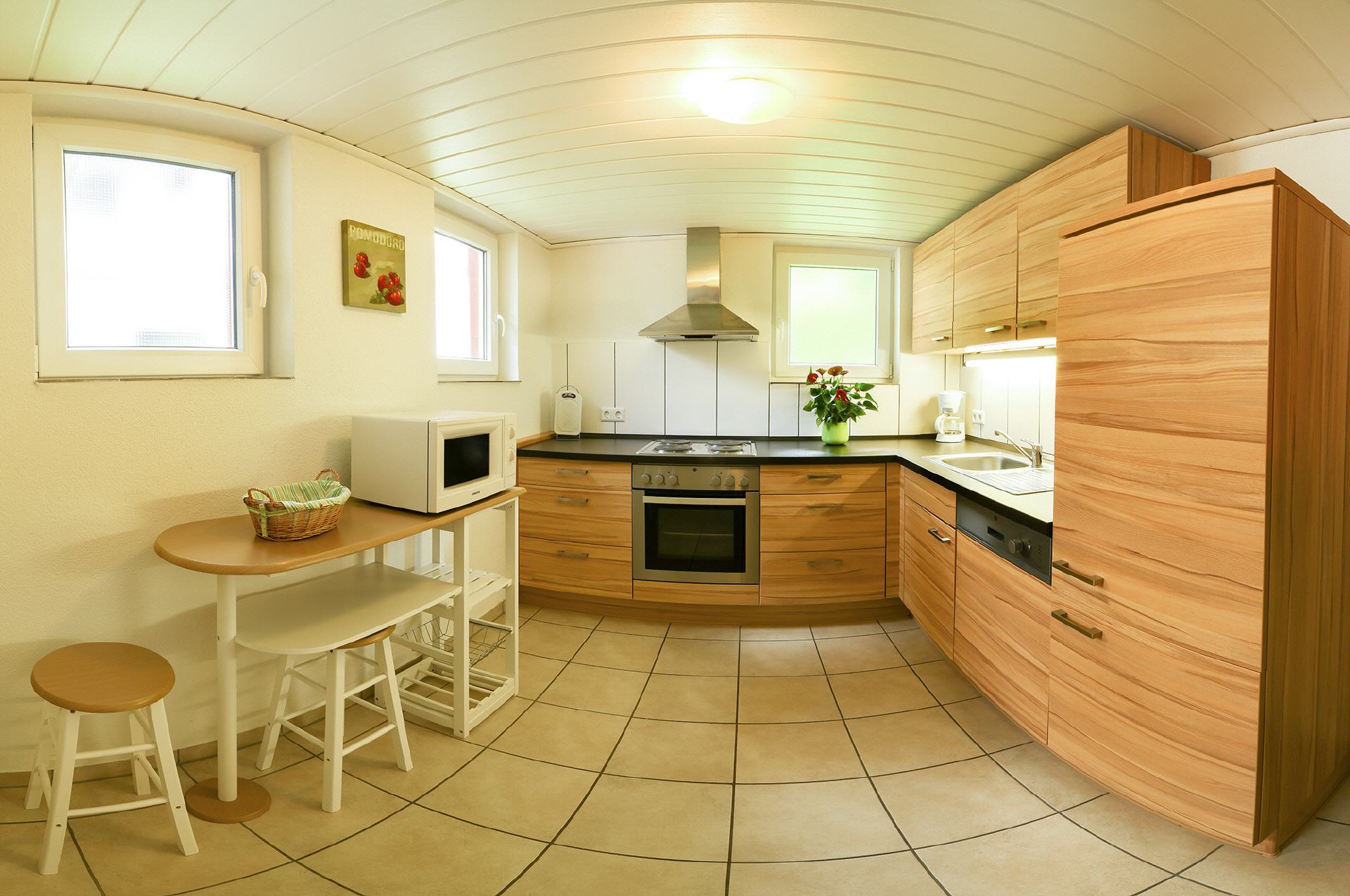 - Küche: Backofen, Elektroherd, Geschirrspüler, Kaffeemaschine, Toaster, Kühlschrank mit Gefrierfach, Töpfe, Geschirr, Besteck für 6 Personen, Brötchenservice.