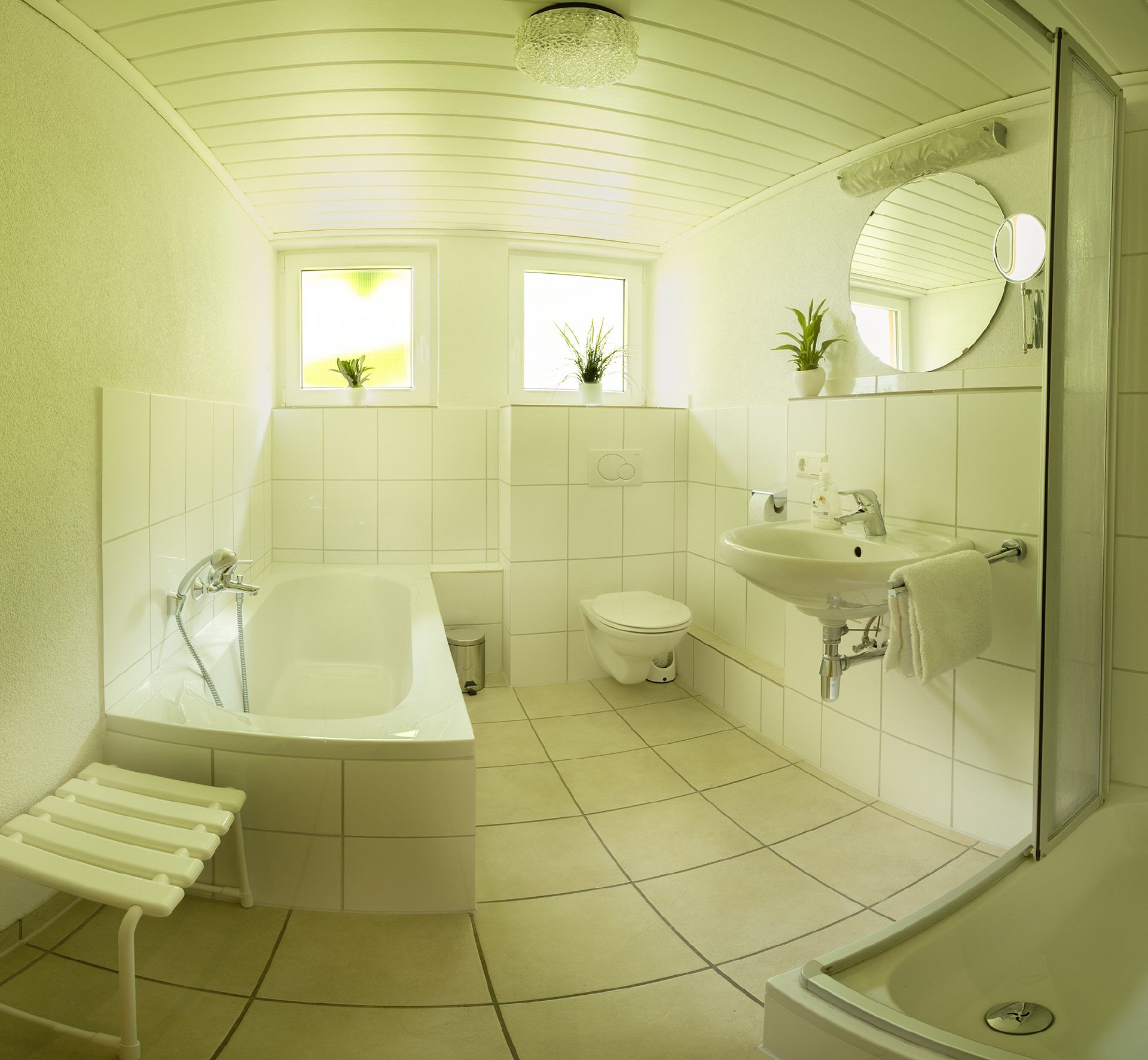- Bad: Waschbecken, Badewanne, Dusche, Toilette.